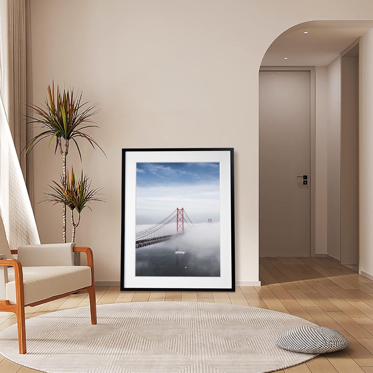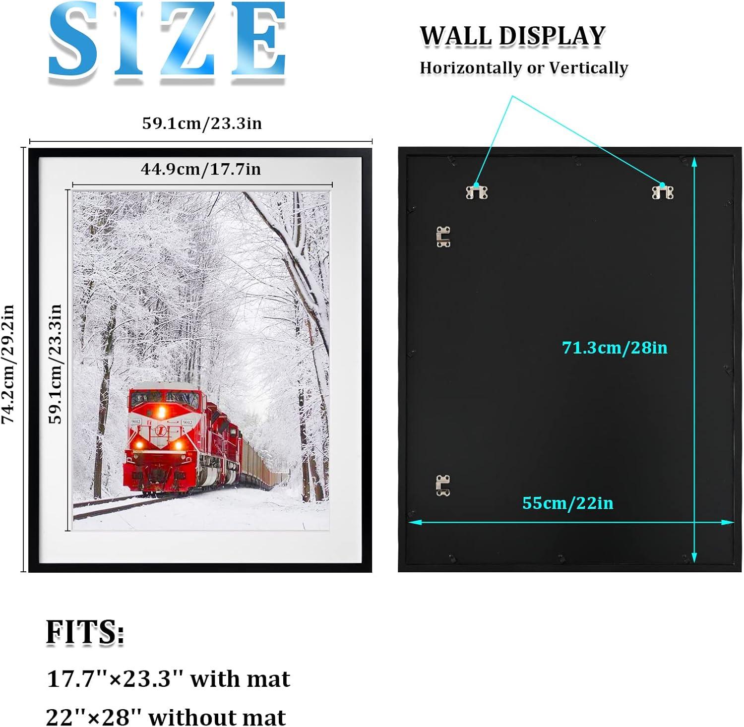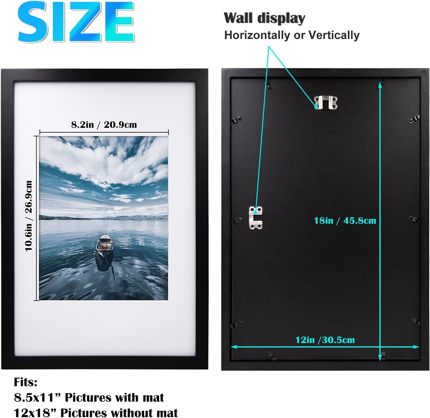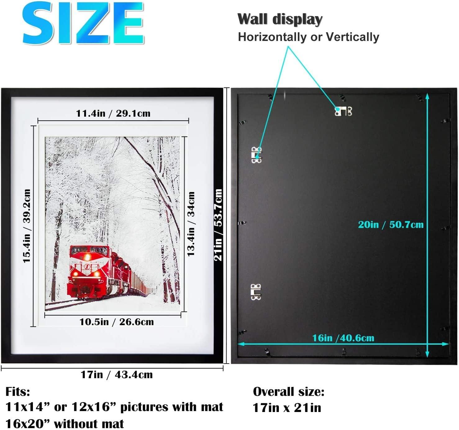 Egofine 18×24 Solid Wood Picture Frame Covered by Plexiglass Matted for 16×20 White – Wall Mounting Hanging Poster Frame Vertically or Horizontally(Black)