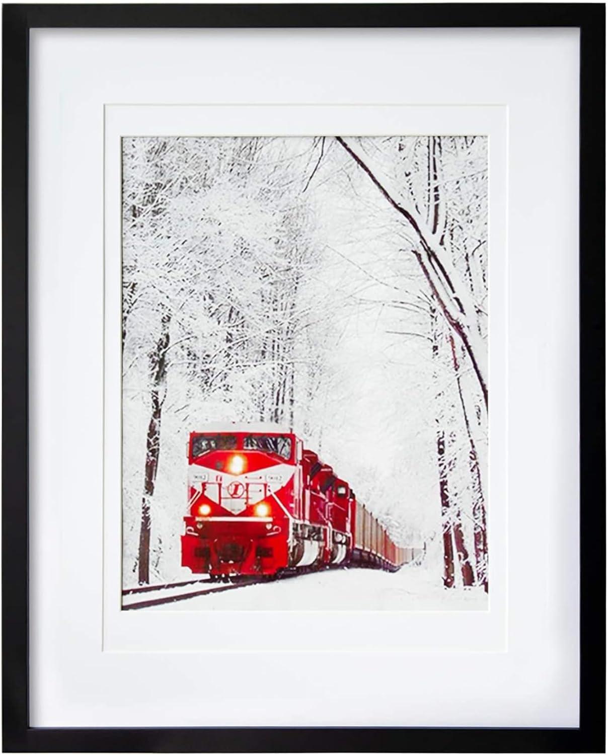 Egofine 18x24 Solid Wood Picture Frame Covered by Plexiglass Matted for 16x20 White - Wall Mounting Hanging Poster Frame Vertically or Horizontally(Black)